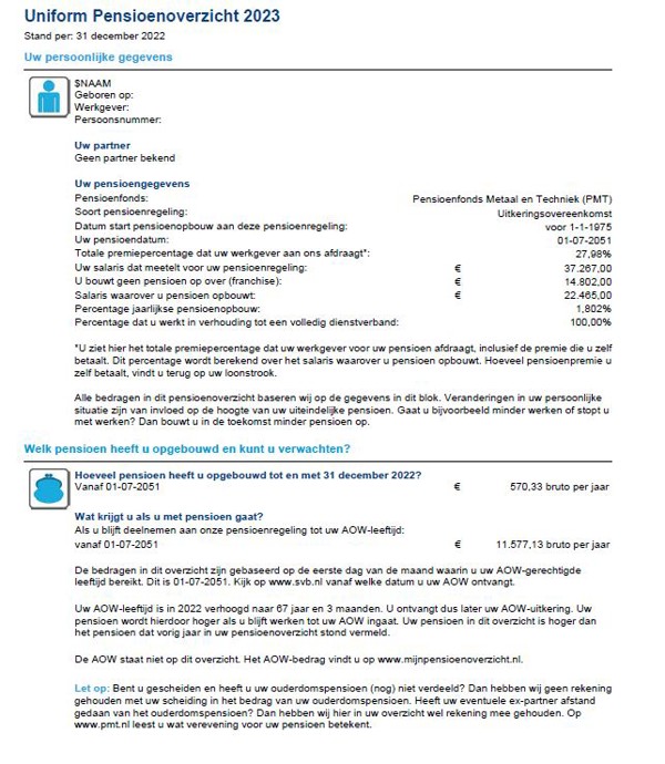Elk jaar krijgt u van ons uw Uniform Pensioenoverzicht (UPO). Op dit overzicht staan uw persoonlijke gegevens, eventuele partnergegevens, loon- en salarisinformatie, wanneer u bent begonnen met opbouwen en wat u kunt verwachten wanneer u met pensioen gaat. Daarnaast vindt u informatie over uw opbouw en wat uw eventuele partner en/of kinderen ontvangen als u overlijdt. Het is belangrijk dat u controleert of de gegevens kloppen. Met deze gemakkelijke checklist kunt u snel en gemakkelijk de informatie op uw eigen UPO controleren.