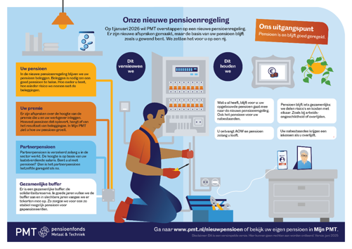 Sinds 1 januari 2026 hebben wij een nieuwe pensioenregeling. Op deze pagina leest u meer over deze nieuwe regeling. In een handige infographic ziet u wat we houden van de oude regeling en wat we hebben vernieuwd. U kunt ook direct naar veelgestelde vragen, de tijdlijn of andere informatie over de nieuwe pensioenregeling.