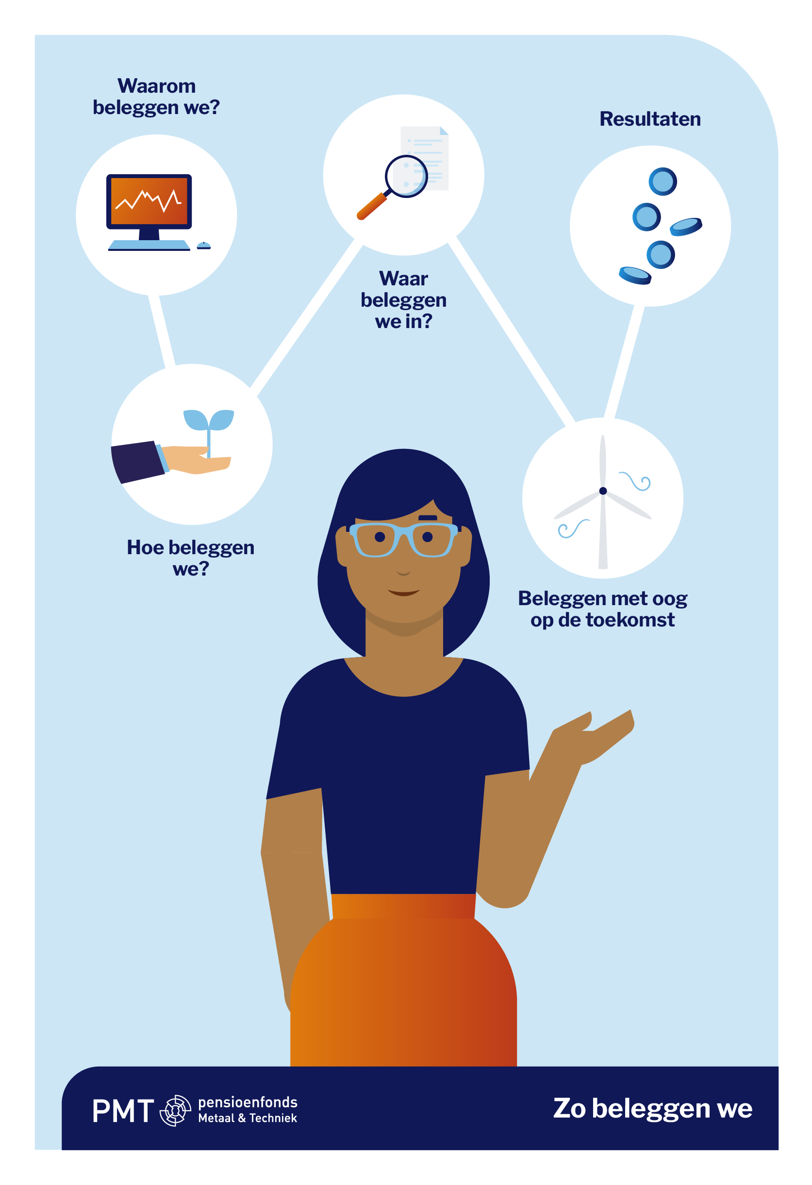 De premie die u betaalt beleggen wij. Dit doen we om uw pensioen te laten groeien en om de premie in de toekomst voor iedereen betaalbaar te houden. We beleggen zo verantwoord mogelijk. Dit betekent dat we keuzes maken die goed zijn voor de wereld waarin we leven.