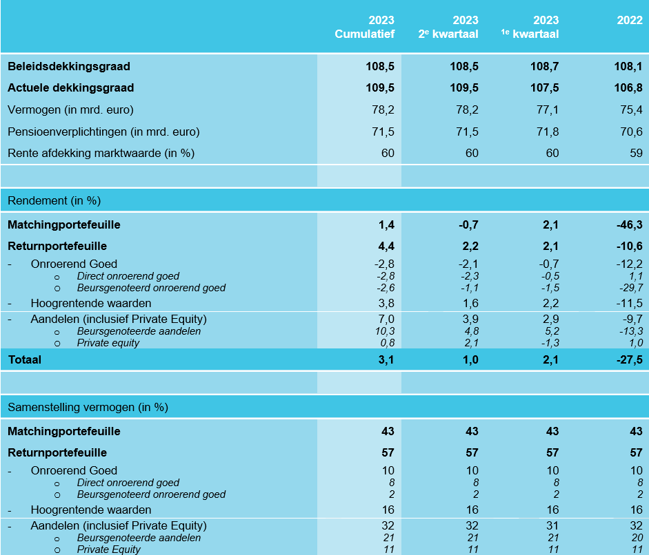 - Beleggingsrendement tweede kwartaal 2023: 1,0%