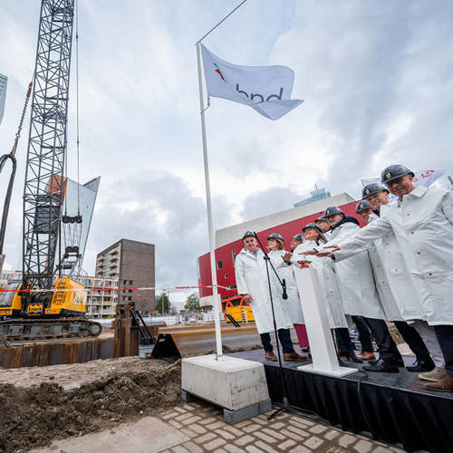 Op dinsdag 29 oktober woonde PMT-voorzitter Terry Troost de feestelijke aftrap bij van de bouw van woontoren De Sax in Rotterdam. De Sax is een grootschalig nieuwbouwproject op de Wilhelminapier in Rotterdam, dat bestaat uit twee woontorens: Havana (180 meter hoog) en Philadelphia (109 meter hoog), verbonden door ‘de Brug’. Het project omvat 916 appartementen, waarvan 822 huurwoningen. PMT en PME Pensioenfonds nemen ieder 411 huurwoningen af. Daarvan vallen er 229 in de categorie betaalbare huur. De Sax, die naar verwachting in 2030 wordt opgeleverd, vormt het sluitstuk aan de zuidzijde van de pier. NLV heeft dit project in opdracht van PMT kunnen realiseren.