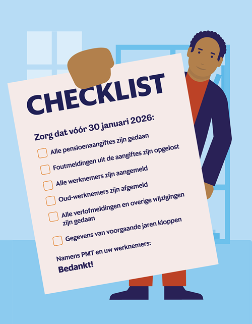 Bereid uw administratie zo goed mogelijk voor op de overgang. Belangrijk hierbij is dat u op tijd uw werknemer aan- en afmeldt. En u vóór 30 januari 2026 alle pensioenaangiftes voor 2025 zoveel mogelijk afrond.